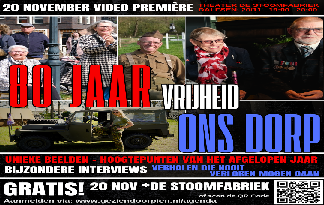 | 20 Nov | Theater de Stoomfabriek Dalfsen. 19:00 uur. Video Premiere "80 jaar vrijheid ons dorp" |